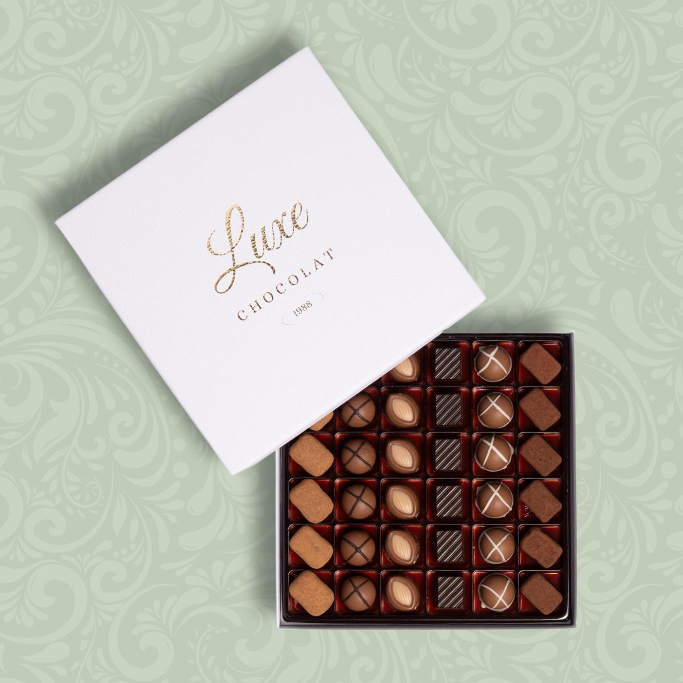 - Qualità premium: realizzato con cacao di alta qualità e ingredienti attentamente selezionati, ogni pezzo di cioccolato riflette l’impegno di Luxe Chocolat per l’eccellenza e l’artigianalità. Goditi il perfetto equilibrio tra dolcezza e ricchezza di cacao in ogni boccone.